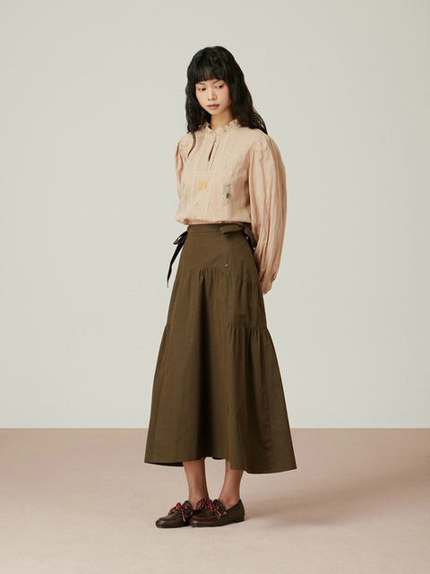[듀엘]리본 디테일 언밸런스 린넨 스커트 D242MSD049