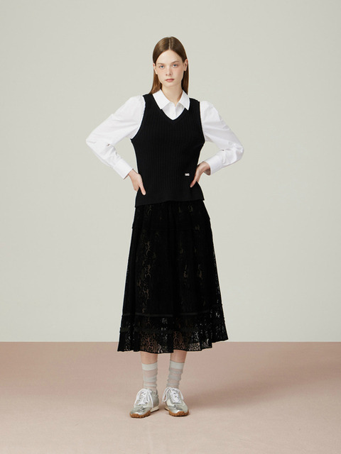 [듀엘] 벨벳 레이스 스커트 BK_D254MSD038