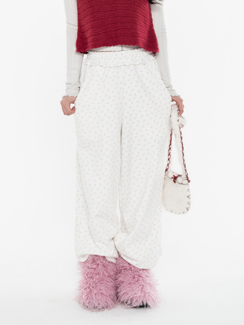 [하이스쿨디스코] 리틀 플라워 플리스 팬츠_화이트