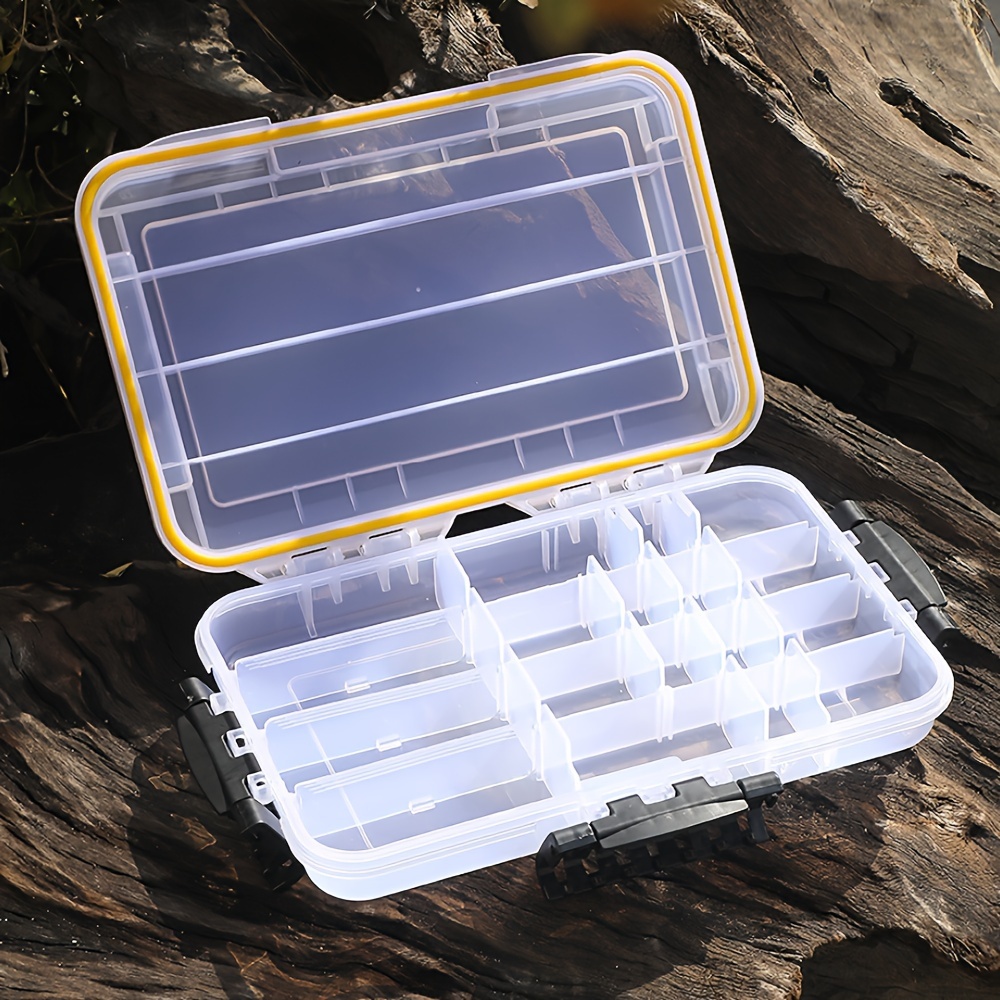 TEMU 대용량 흰색 낚시 도구 상자, 조절 가능한 칸막이 - 튼튼한 PP 소재, 사냥 및 낚시 액세서리 보관에 이상적, 완전히 채워진 낚시 도구 상자