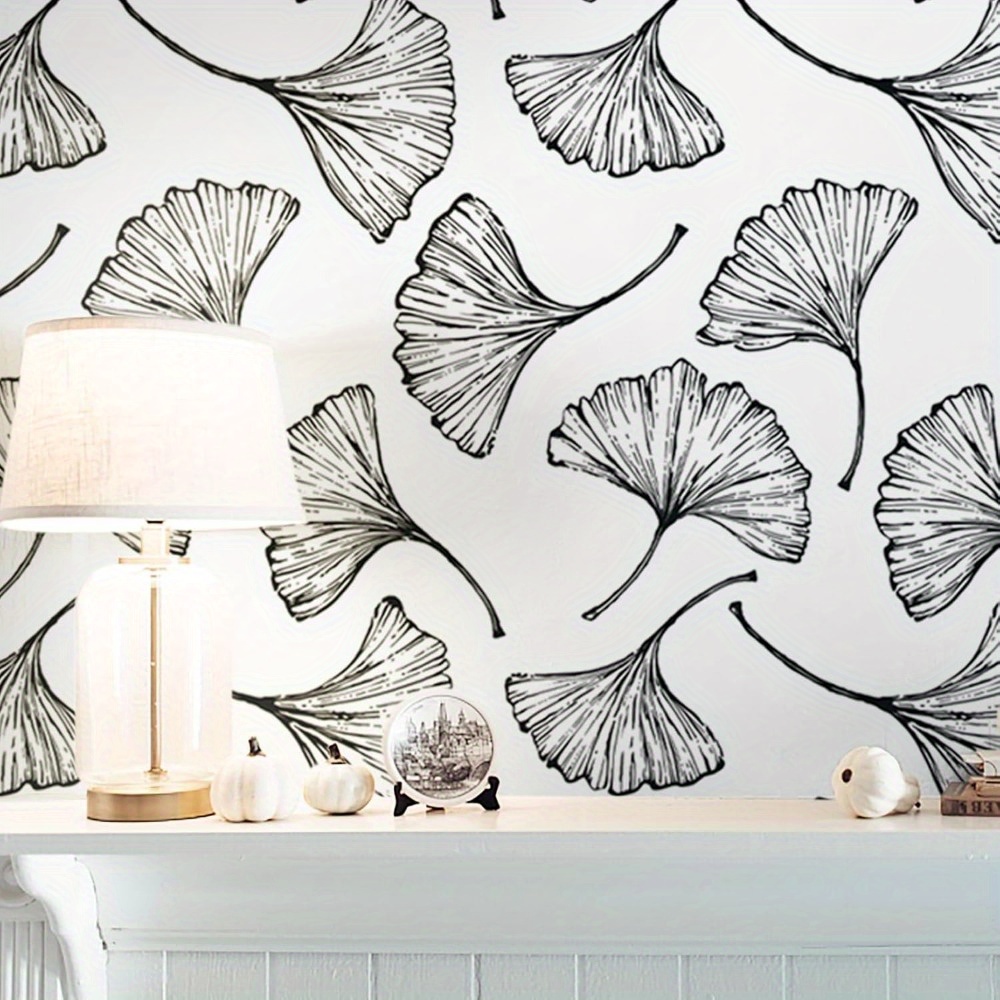 TEMU 1롤 HEROAD 방수 탈착식 비닐 벽지 - 화이트 & 블랙 은행잎 패턴, 초장형 17.3x197인치, 플로럴 보타니컬 디자인, 욕실·침실·거실 장식용, 우아한 인테리어 소재, 내구성 강화, 액센트 월, 실내 디자인