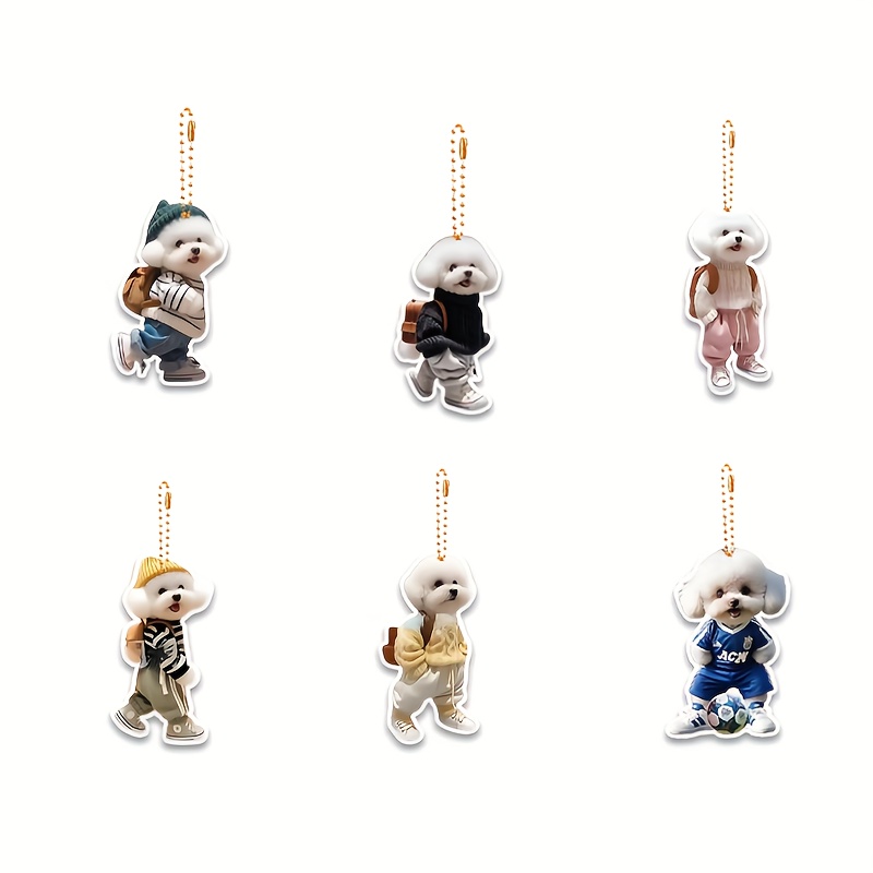 TEMU 2D 플랫, 6개 귀여운 & 티컵 강아지 디자인 아크릴 참 - 발렌타인데이, 어버이날, 크리스마스 선물, 차량 백미러 펜던트, 키체인 액세서리, 백팩 장식, 애완동물 애호가 선물, 홈 & 가든 데코, 파티 답례품