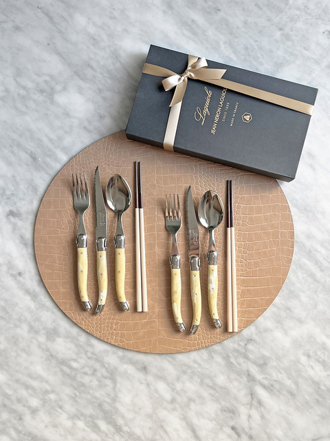 [라귀올] [선물포장] 장네론 라귀올 테이블양식기 마블 베이지 & 샌들 젓가락 2인 세트