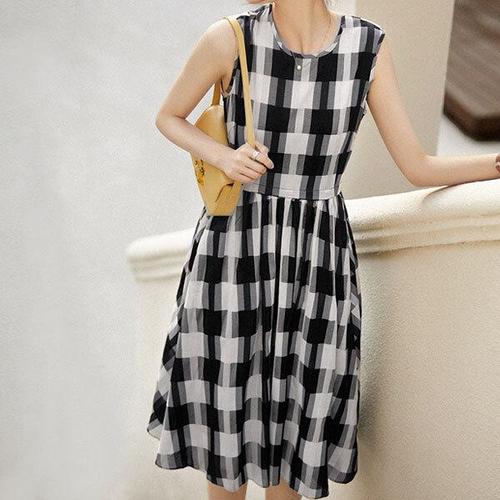 [베나프]라라 체크 민소매 원피스_BJ2OP006
