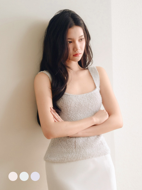 [에브모우] 클래식 부클 트위드 무드 슬리브리스 니트 탑_피치 핑크 멜란지, 페일 민트 멜란지, 페일 라벤더 멜란지, 민소매 니트