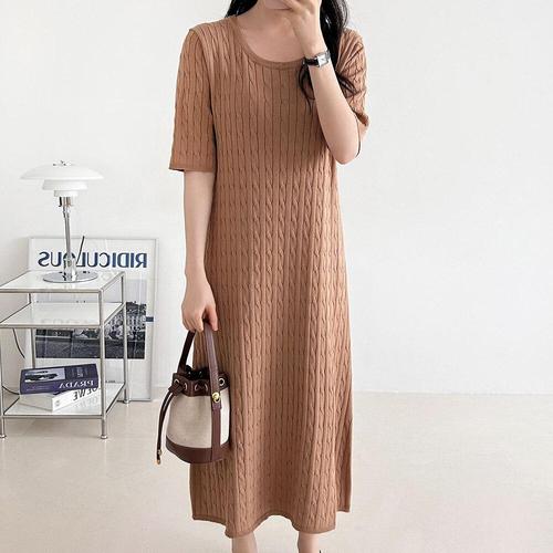 [옷자락] 여자 꽈배기 반팔니트 라운드넥 간절기 롱원피스