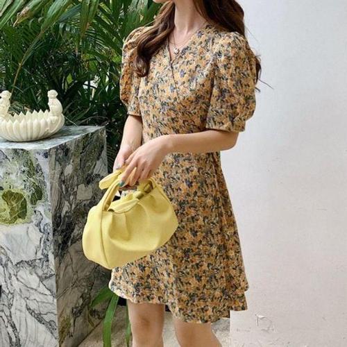 브이넥 랩원피스 플라워 패턴 캉캉 스커트