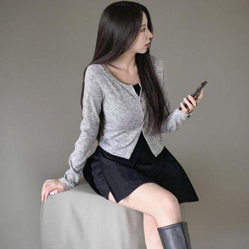 [옷자락]여성 클래식 배색 레이어드 레이온 슬림 가디건