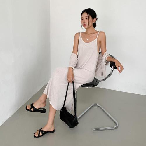 여성 레이온 롱원피스 골지 카디건 날라리 세트