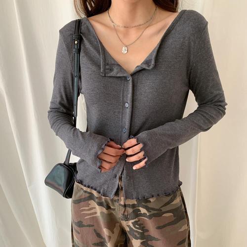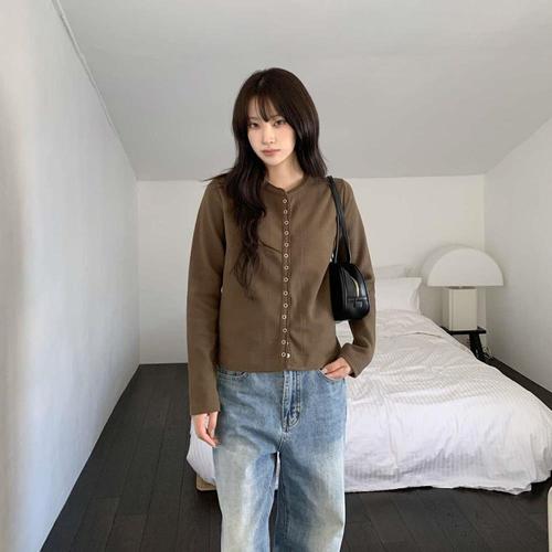 여성 U넥 스냅버튼 롱슬리브 레이온 가디건