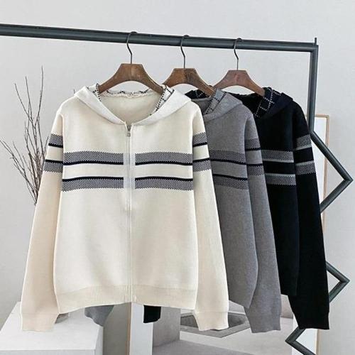 [다잇템_패션]여성 집업 더블라인 후디 레이온 가디건