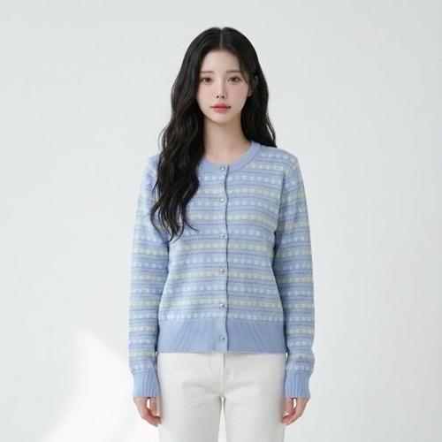 여성용 세일러카라 레이온 패턴 엠보드 가디건