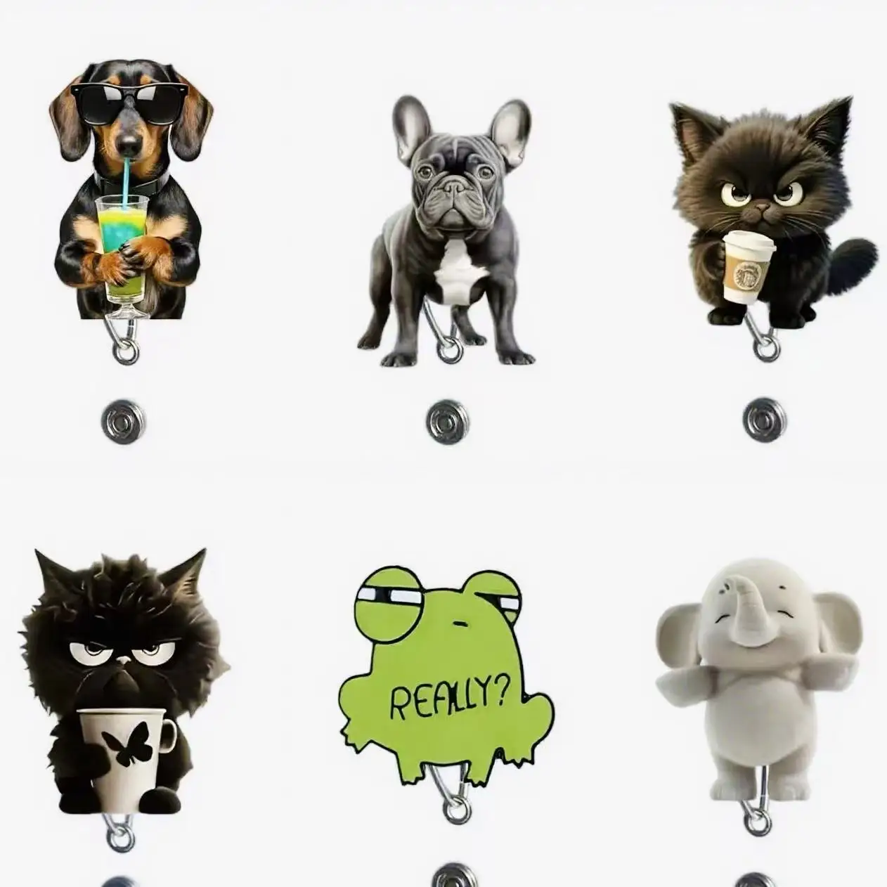 [2D 플랫]1개 귀여운 스타일의 금속 클립이 있는 접이식 배지 릴 - 24인치 분리형 랜야드, 360도 회전 ° 회전 고리, 내구성 있는 나일론 코어
