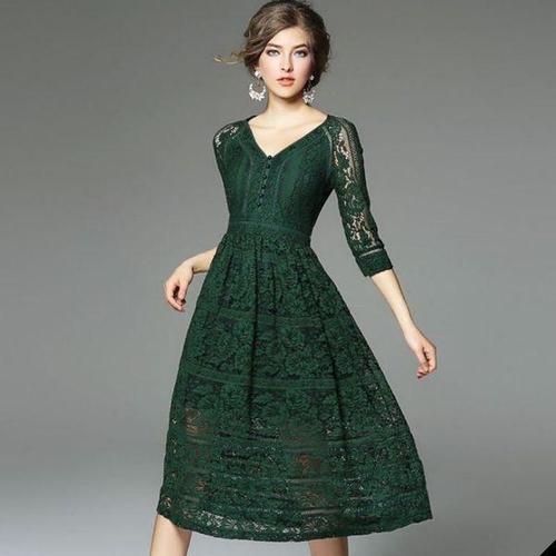 여자 V넥 진주 시스루 스몰웨딩 하객 레이스 원피스