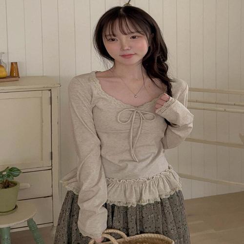 [엘루이즈][엘루이즈] 프리첼 프릴 러플 로맨틱 레이스넥 쫀득 긴팔티(4color)