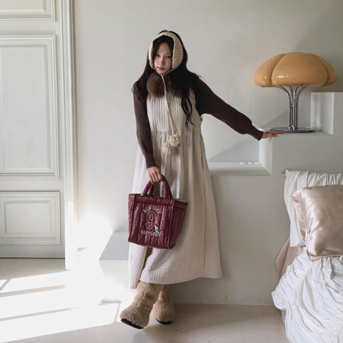 누빔 패딩 레이어드 롱 원피스 퀼팅 리본 겨울 방한 임부복 나시원피스 Do166