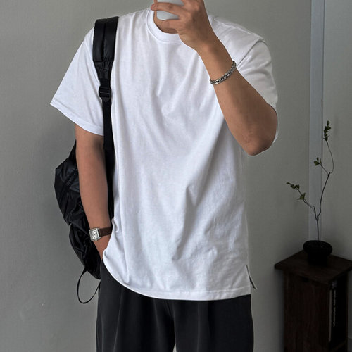 프리미엄 고급원단 수피마코튼 면 100% 무지 롱 레이어드 티셔츠 사이드 트임 절개 // 남자 반팔 레이어드 레이어드티 봄 여름 가을 겨울 사계티 여름티 흰티 검은티