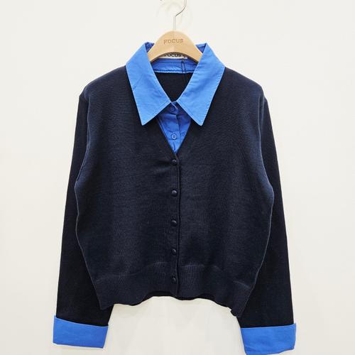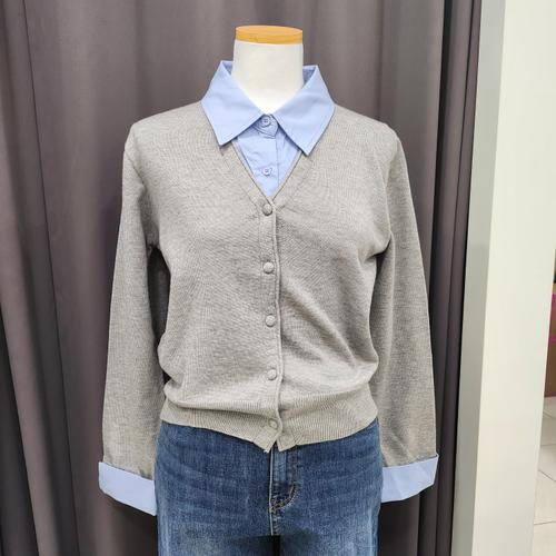 Latium HC06 깔끔한 셔츠 소매 넥 레이어드 하트 셔츠형 카라가디건 T2613cd09G