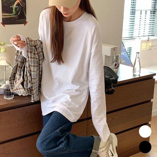 [에이치플러스몰]여성 베이직 레이어드 이너 간절기 긴팔티 소프트 터치 루즈핏 티셔츠