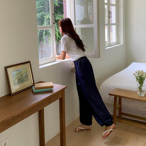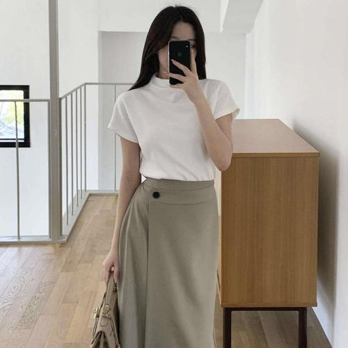 [옷자락]여성 레이온 스판 하이넥 기본 컬러 반팔 티셔츠