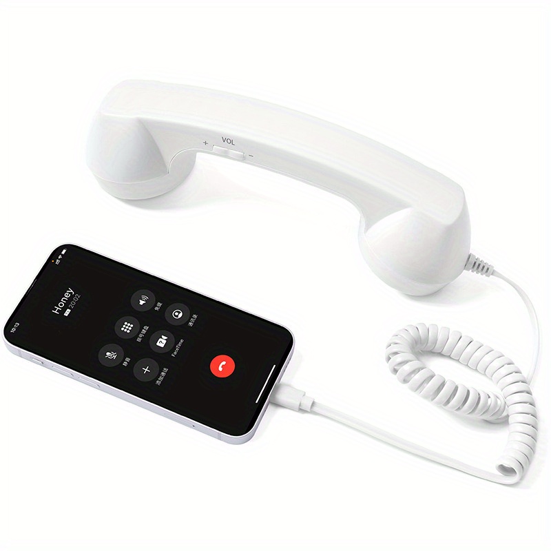 TEMU 레트로 유선 헤드폰, 클래식 전화기 수신기, 외부 폰 잭, 타입-C 플러그 앤 플레이 디자인으로 선명한 통화 가능, 변환기 필요 없음, 휴대폰 및 컴퓨터 호환, 조절 가능한 볼륨, 일상 출퇴근 및 사무용 이상적, 배터리 불필요