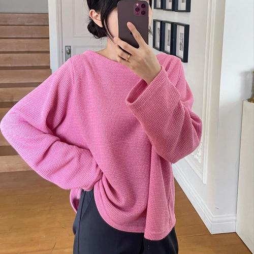 [옷자락] [시즌오프]보트넥 오버핏 짜임패턴 면니트 롱슬리브 티셔츠_5