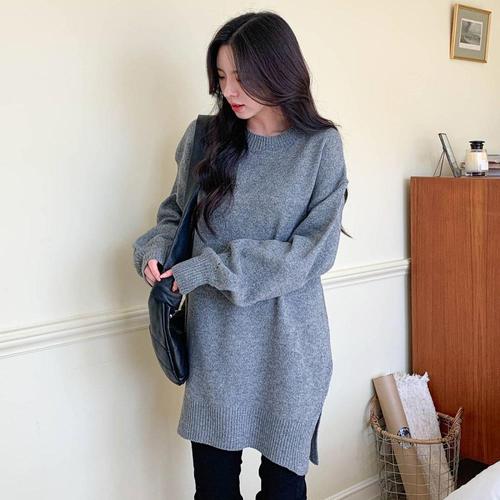 [옷자락] [시즌오프]가을 옆트임 롱 오버핏 긴팔 니트티셔츠_5
