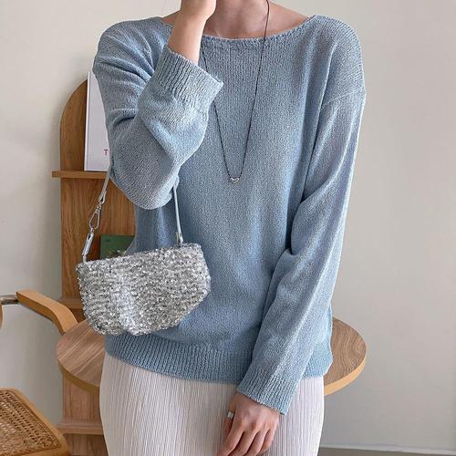[옷자락] [시즌오프]입술넥 시스루 롱슬리브 여름 여리여리 니트_5