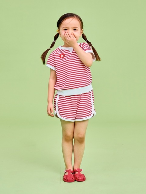 [로토토베베] 양기모 스트라이프 레트로 실내복 핑크
