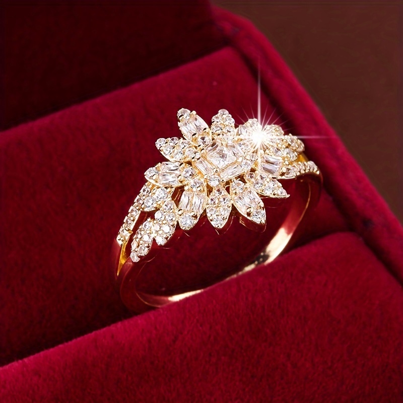 TEMU 정교한 꽃 디자인 합성 지르코니아 반지
