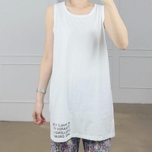 빅사이즈 여성의류 레이어드 20수 이너 롱 나시 민소매 옆트임 티셔츠 오버핏 루즈 봄 여름 사계절 66-110 size