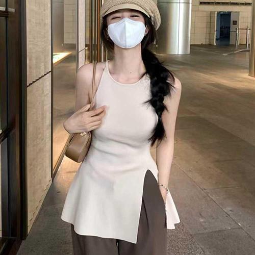 여름 휴가 휴양지 룩 트임 롱 홀터 넥 나시 티셔츠 WFL7SMV