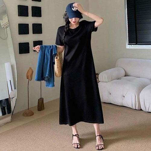 [셀러허브_여성트랜드패션]ONM 여자 무지 오버핏 반팔 롱티셔츠 원피스 홈웨어룩