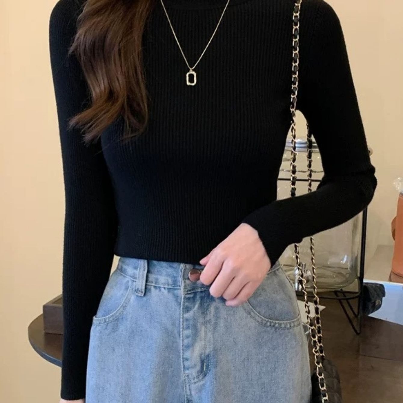 TEMU 여성용 우아한 하프 하이넥 스웨터 - 부드러운 긴팔 겨울 스웨터, 시크한 오피스룩부터 파티룩까지, 일상 및 공식 행사에 적합한 포근한 가을/겨울 상의