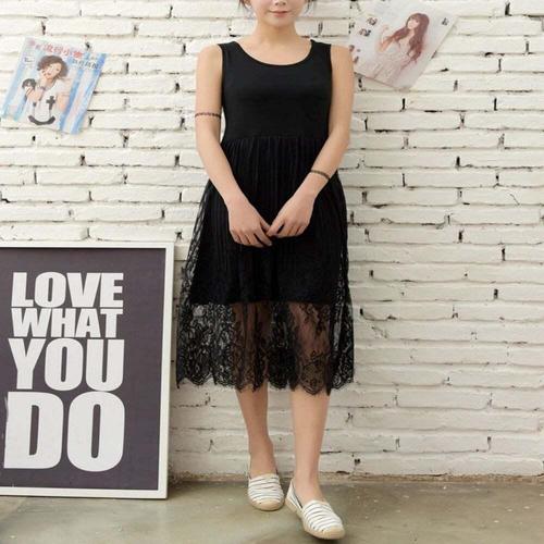 쉬폰 꽃무늬 레이어드 나시 시스루 롱원피스 레이스