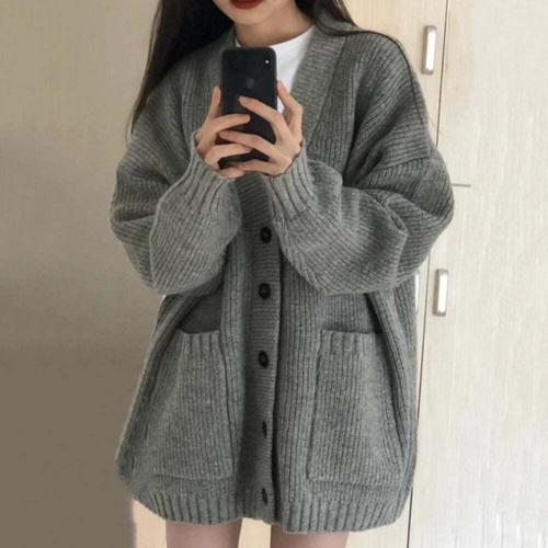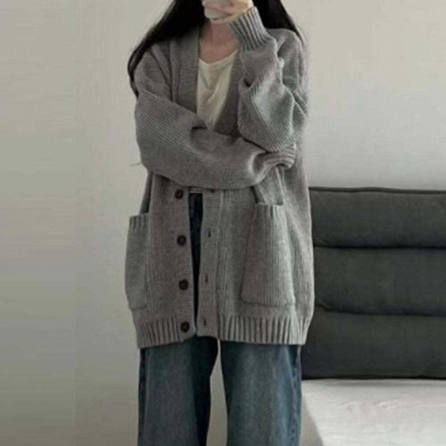 [셀럽하우스]투포켓 BEFH0424 두툼한 루즈핏 니트 브이넥 가디건