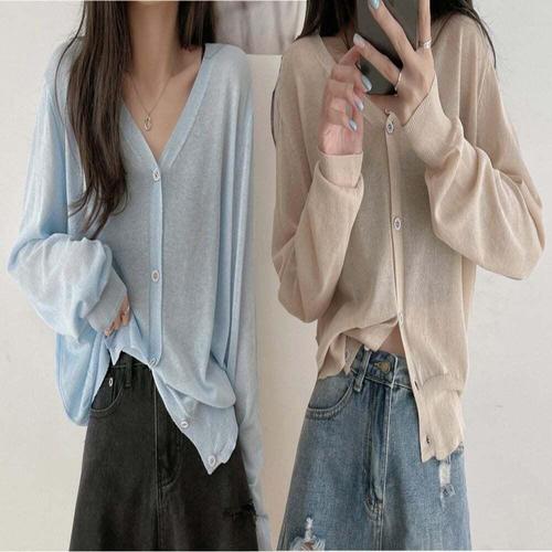 [셀럽하우스]여성 WWTX5259 브이넥 시스루 긴팔 루즈핏 여름 니트 가디건