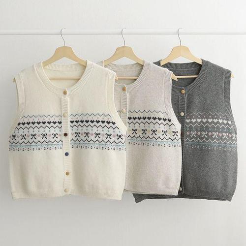 [옷자락] 여성 러블리 하트 리본 패턴 박시 니트 조끼