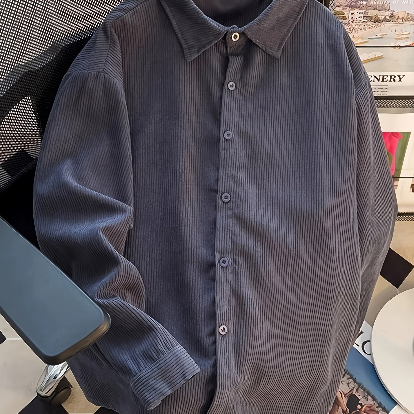 TEMU 한국식 시크 가을 프렌치 스타일 빈티지 라펠 싱글 브레스트 루즈핏 코듀로이 얇은 긴팔 셔츠 자켓 여성용|블라우스|빈티지|셔츠