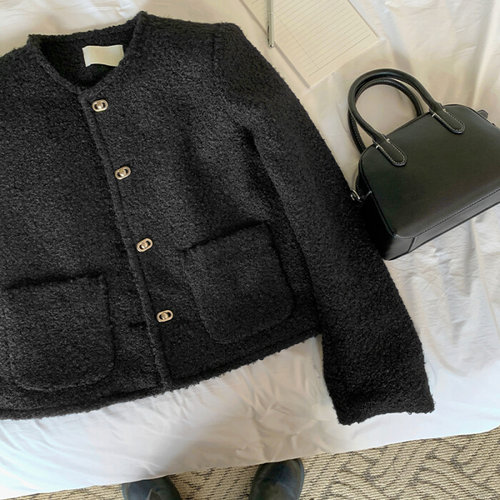 에이치다 / 겨울하객룩/누빔안감 리에르 노카라 부클 트위드자켓