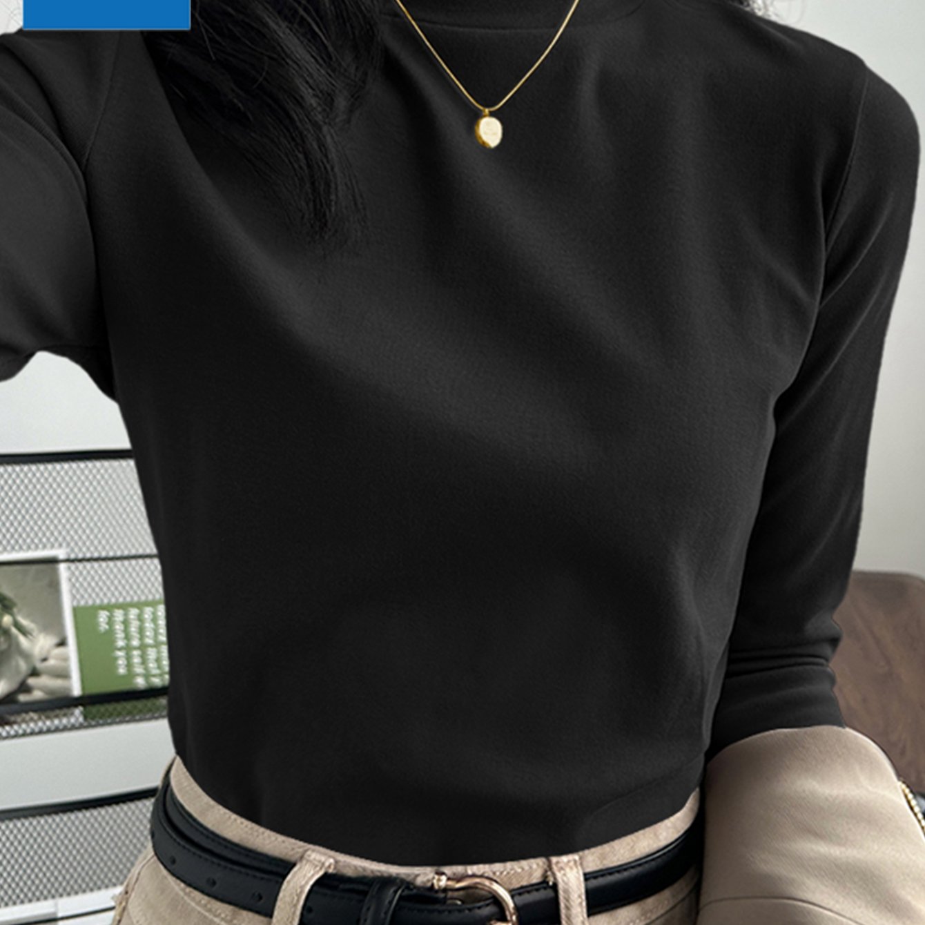 TEMU 여성용 긴팔 티셔츠 / 세미 하이넥 / 베이직 내의 / 슬림핏 / 솔리드 컬러 크루넥 탑 / 사계절 필수 아이템 / 출퇴근, 파티, 캐주얼 장소에 적합 / 매치하기 쉬움