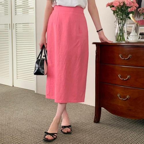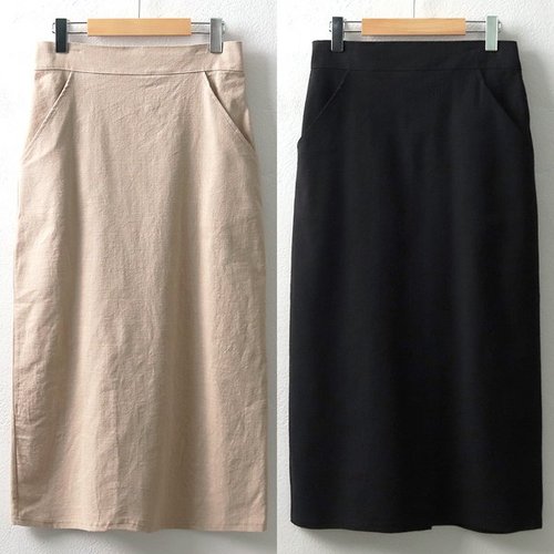 [옷자락] 여자 컬러 베이직 뒷트임 린넨 롱 스커트