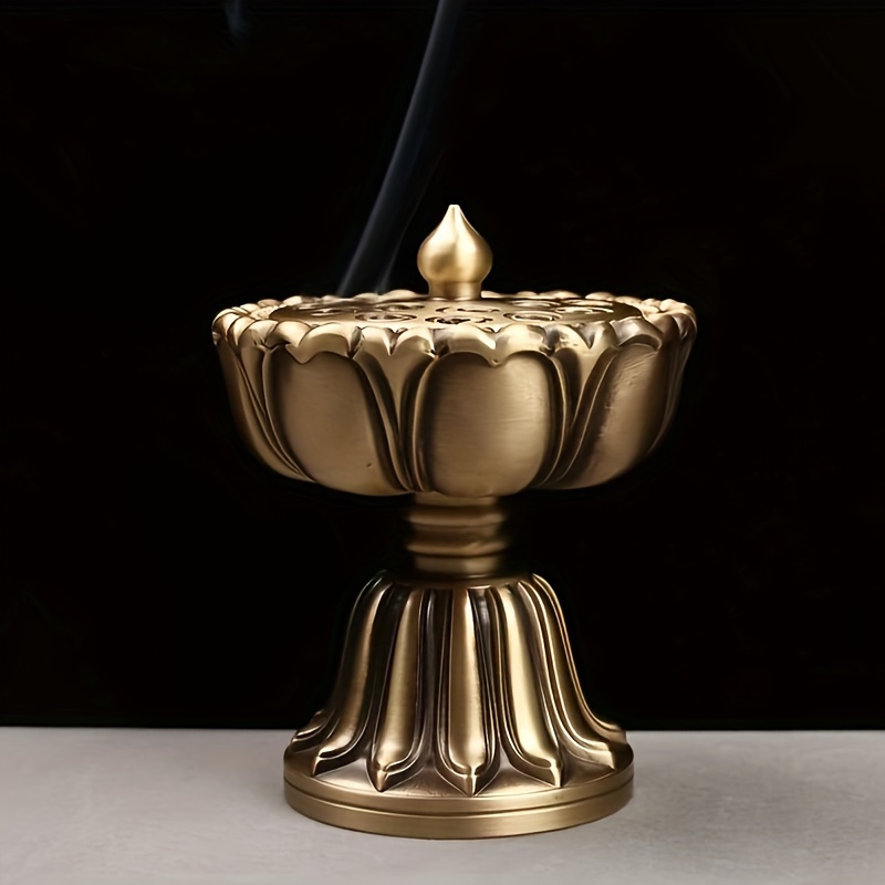 TEMU 1pc 로투스 향로용 우아한 구리 합금 - 고유형 콘형 디자인, 아가우드 및 산들우드에 이상적, 가정 및 차방 장식에 완벽, 크리스마스, 할로윈, 추수감사절, 발렌타인데이 및 라마단(이드 알피트르) 동안 분위기를 향상시킵니다. 향로 홀드