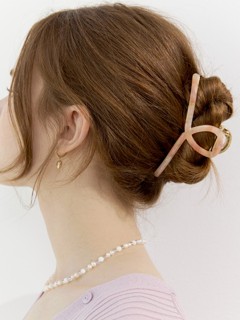 [쎄꼰도] 마블 트위스트 헤어 메탈 집게핀_오렌지 블라썸_핑크
