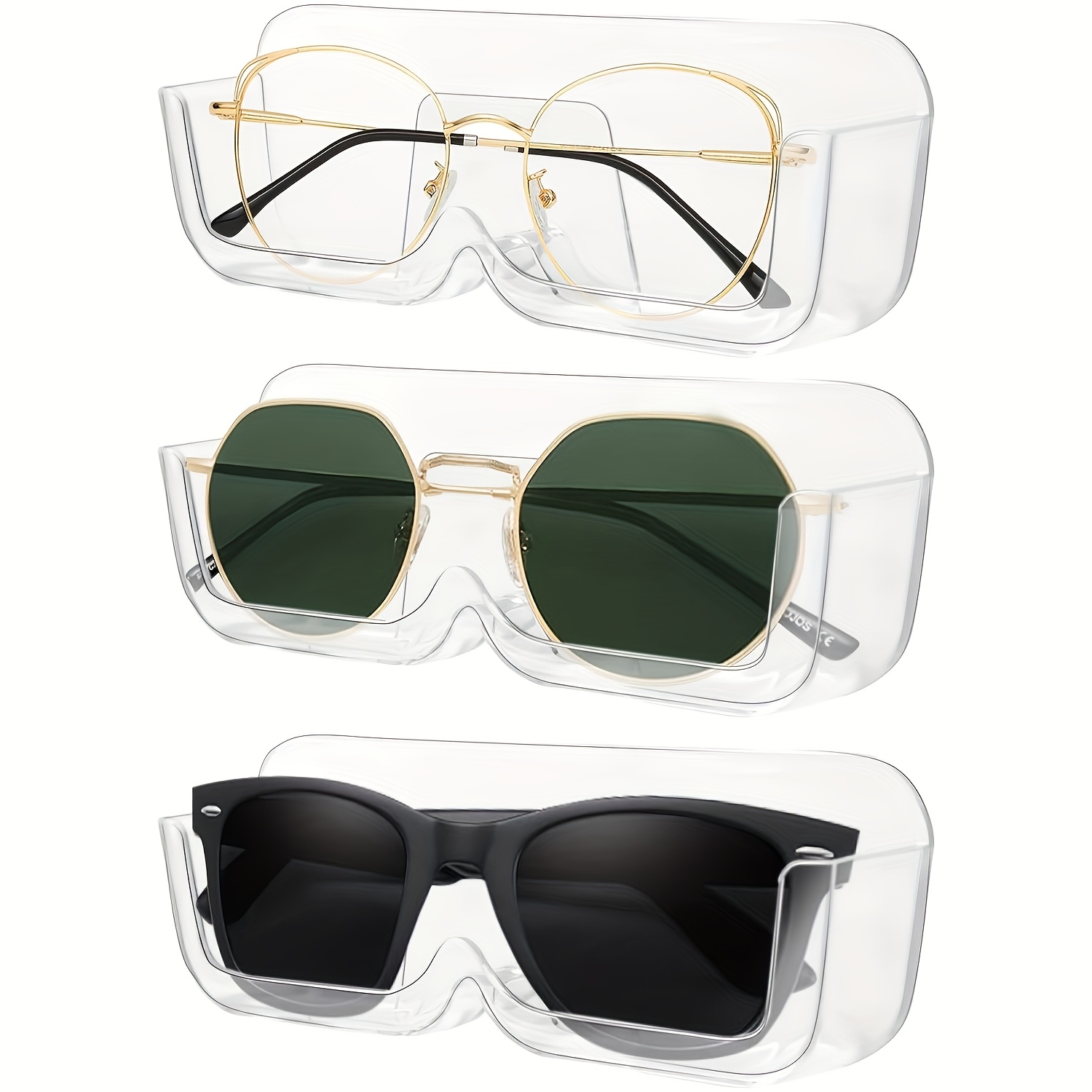 TEMU 벽걸이형 안경걸이 3개 세트, 플라스틱 안경 보관 랙, 내구성 있는 소재, 침대 옆 진열대, 휴대용 거실 안경 정리함, 압력에 강한 스타일리시한 정리함, 컴팩트한 디자인 - 안경 후크