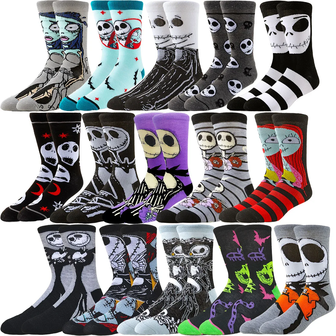 6 쌍 Miniso 디즈니 힙합 거리 패션 남여 만화 애니메이션 양말 남성 여성을위한 재미있는 캐주얼 승무원 양말 귀여운 디자인