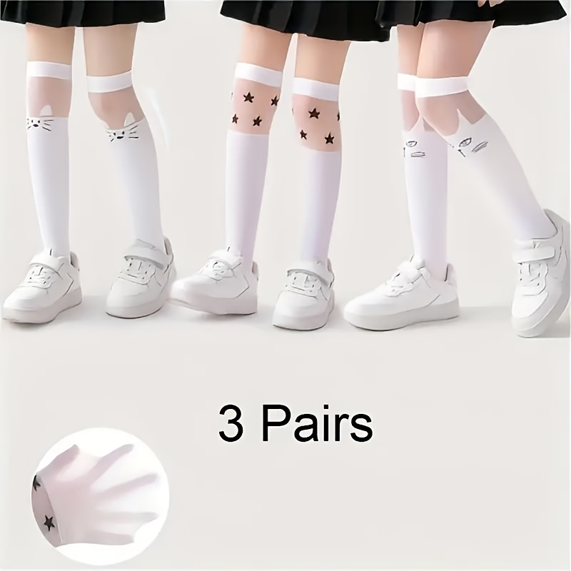 TEMU 1/3 쌍 소녀용 만화 패턴 오버더니 양말 - 부드럽고 신축성 좋은, 봄/여름/가을 착용에 적합한 청소년용