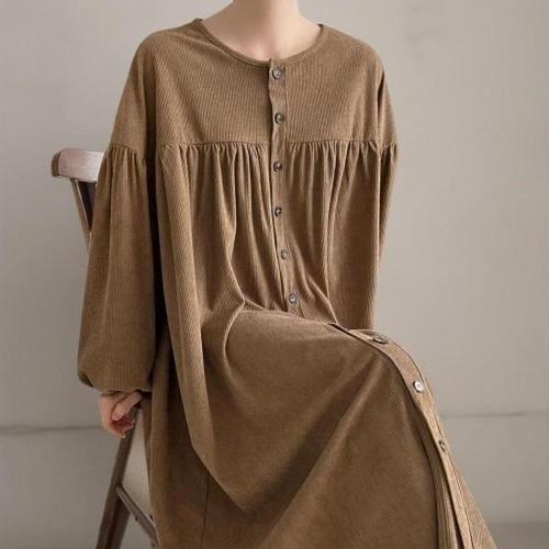 [다잇템][다잇템] 여성 큰사이즈 벌룬 버튼 FW 골덴 롱드레스_23740520_588872