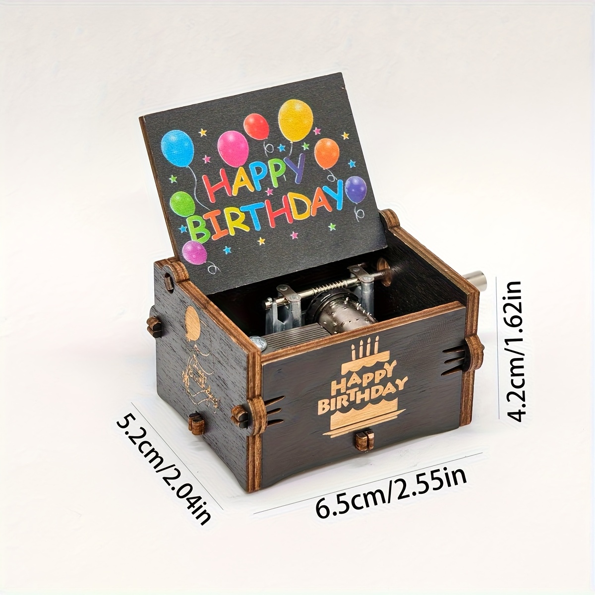 TEMU 1개 생일 테마 뮤직 박스 "해피 버스데이" 노래, 풍선 & 케이크 장식, 크랭크 작동 멜로디 - 인조 나무 자장가 선물, 생일 파티 장식, 생일 및 특별한 날을 위한 향수 가득한 기념품