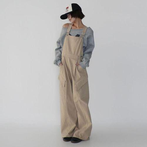 캐주얼 데님 오버핏 포켓 청 멜빵 바지 lzk9+5fpj